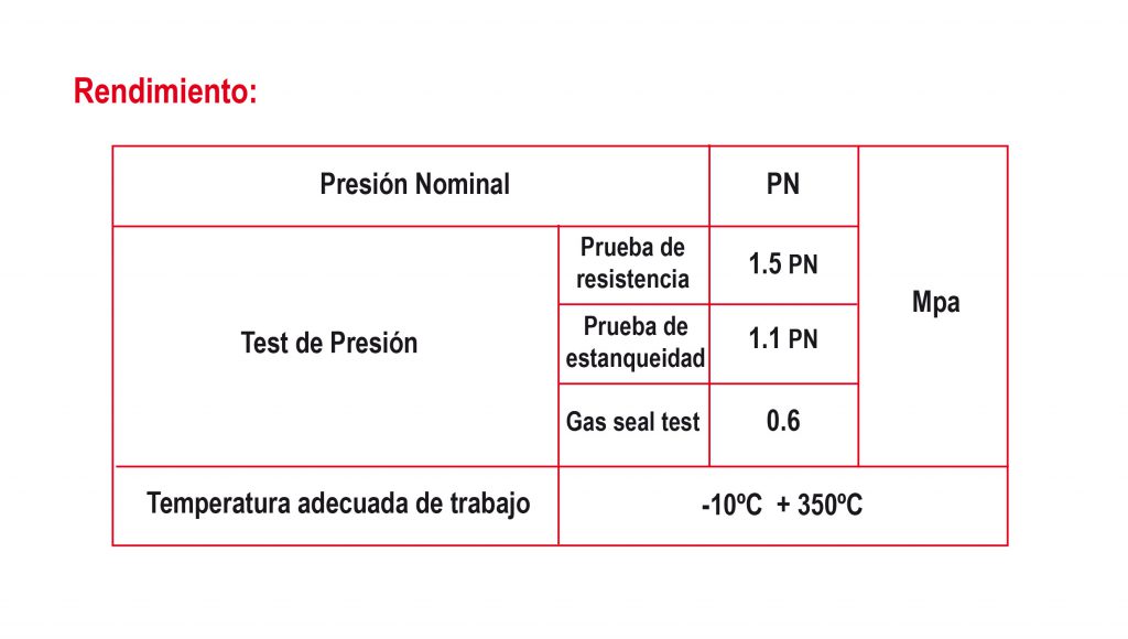 – Aplicación bajo presiones nominales de PN1.6 Mp a 6.4 Mpa.